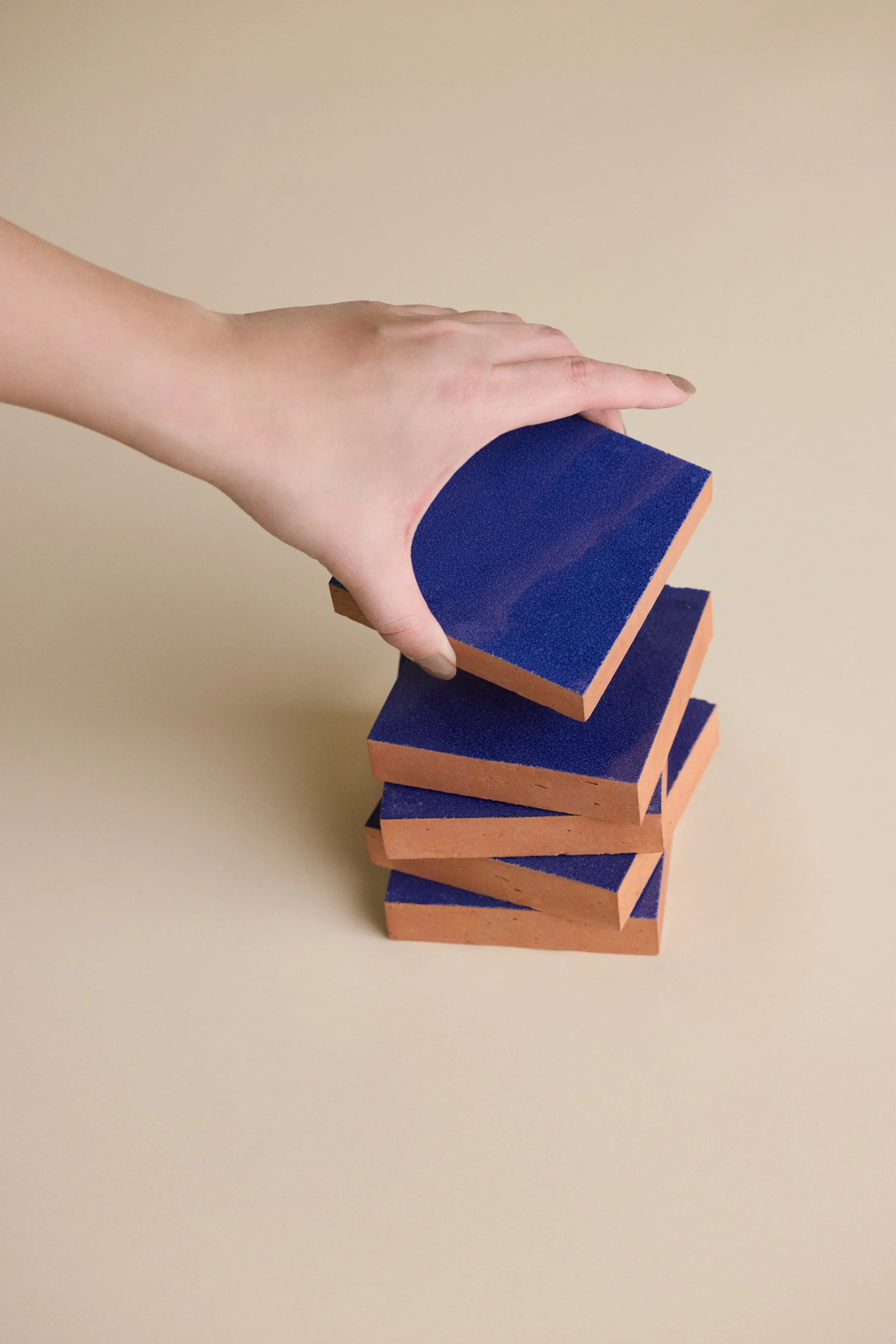 Each tile begins in the maker’s hands, shaped slowly and deliberately, where no two forms are ever exactly alike. Subtle variations in surface, edge, and tone capture the quiet beauty of human touch. What emerges is not perfection, but character.