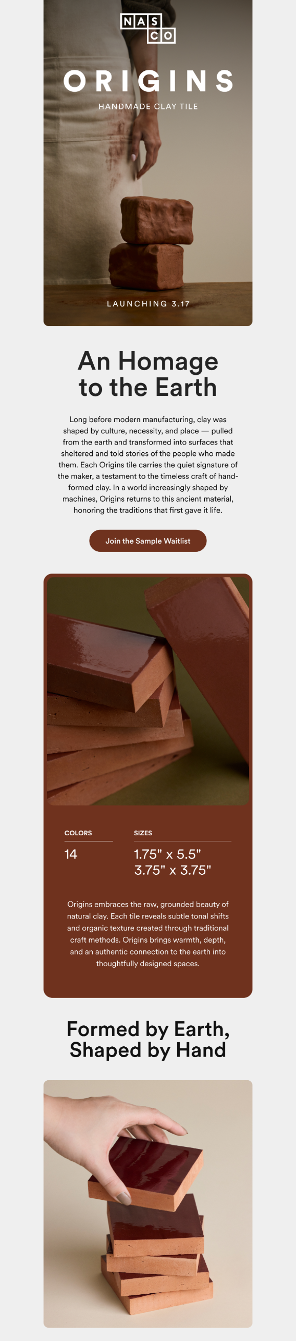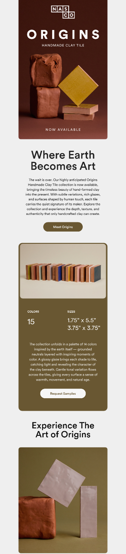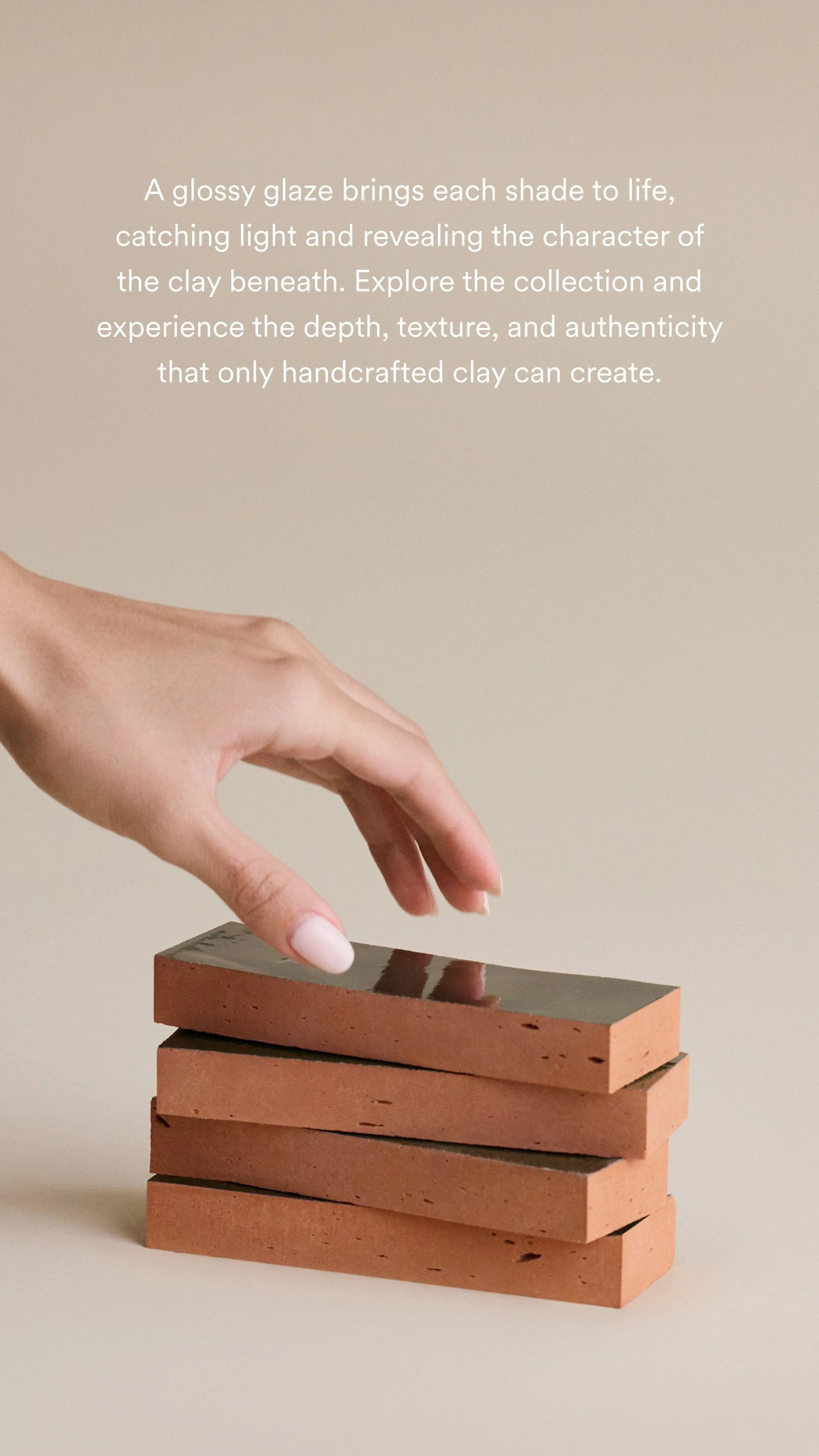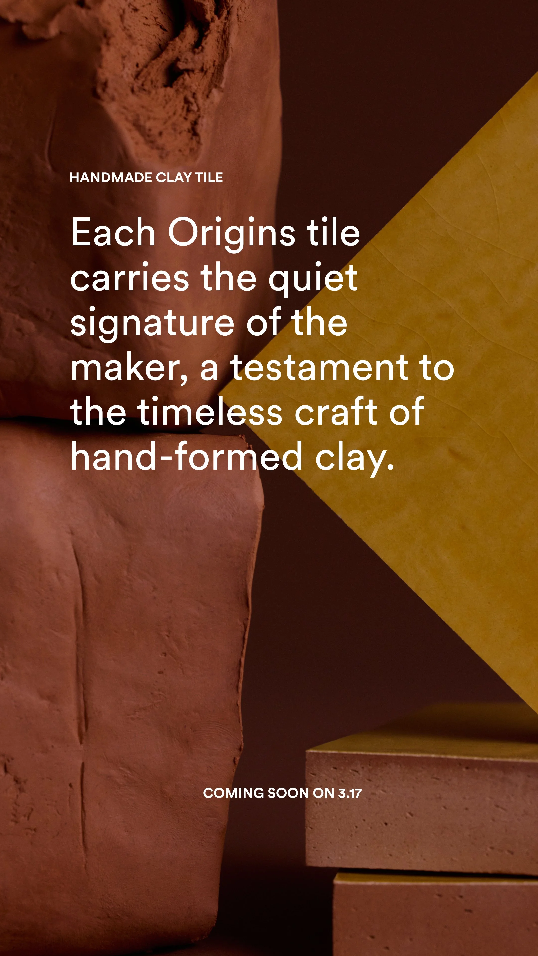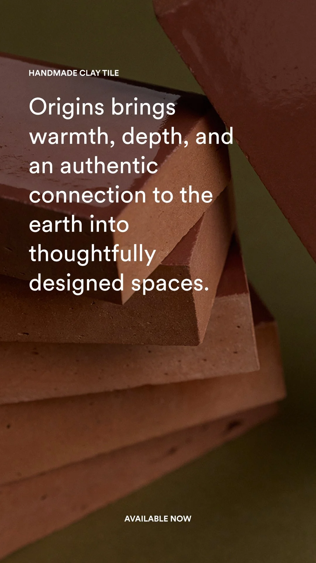 Handmade from natural clay, Origins is a celebration of pure material and human touch. Each tile reflects intentional craftsmanship and thoughtful design, making the collection a refined choice for spaces that value authenticity, texture, and timeless appeal.