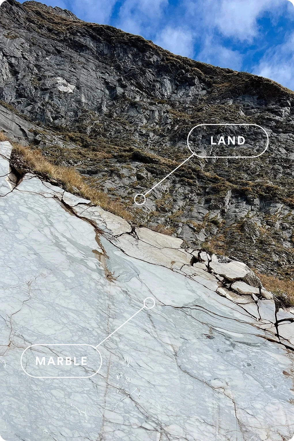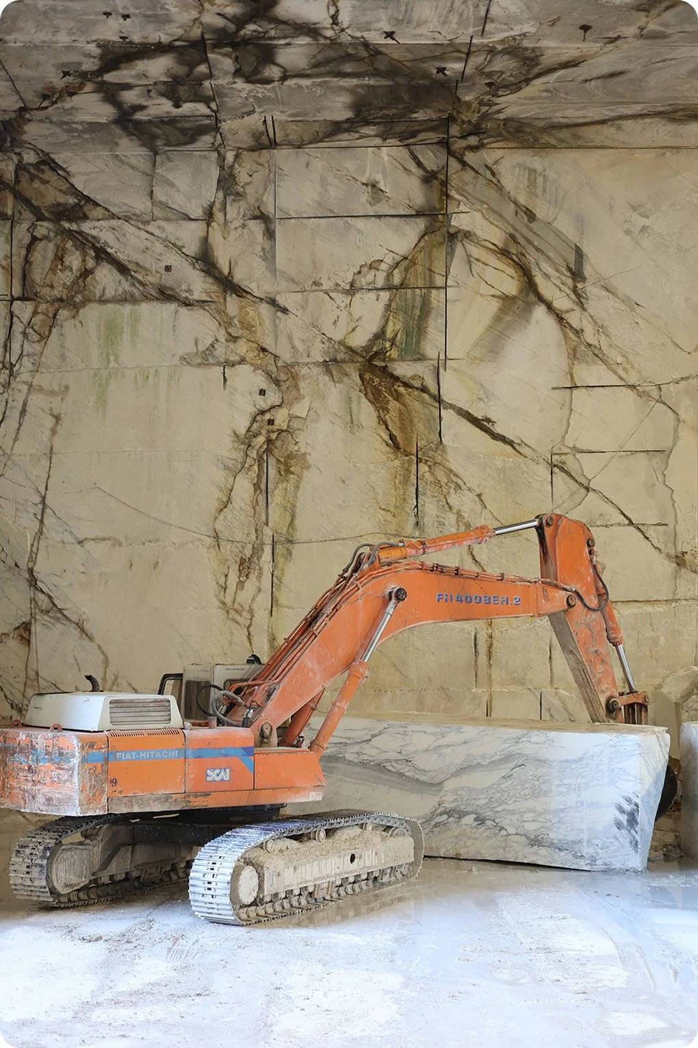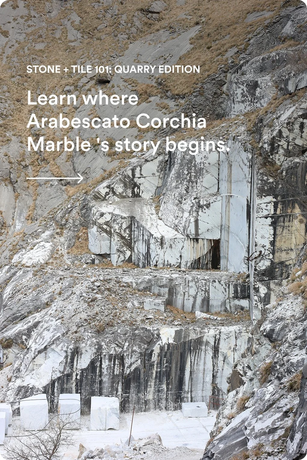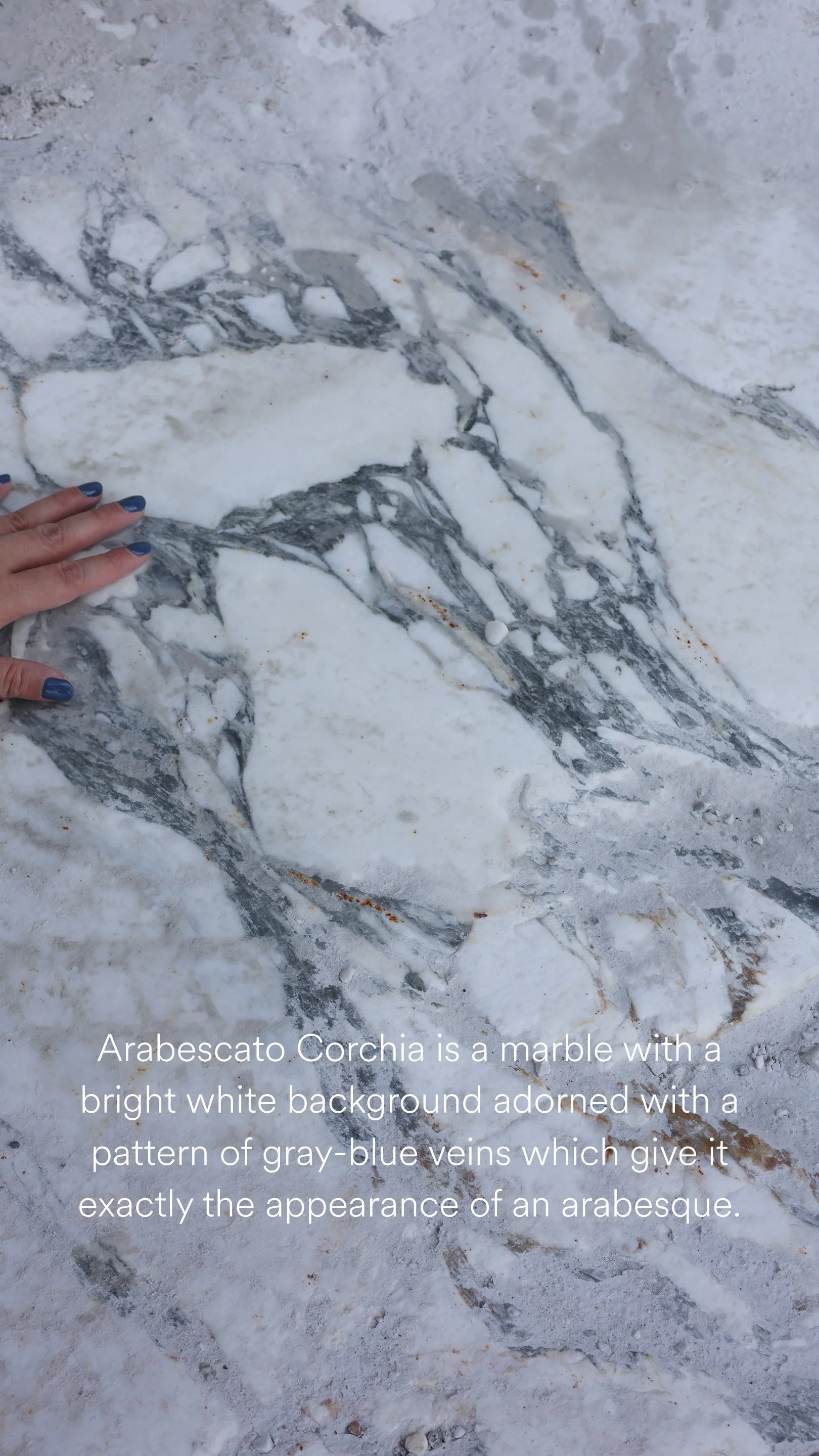 She was there in Italy, standing in the mountains where it all begins — witnessing the raw beauty of the stone in its purest form. Seeing the scale, the texture, the extraction — it transformed the way we chose to tell this story.