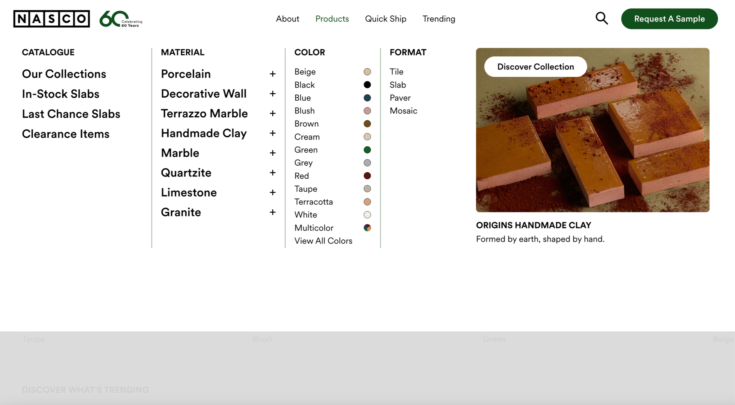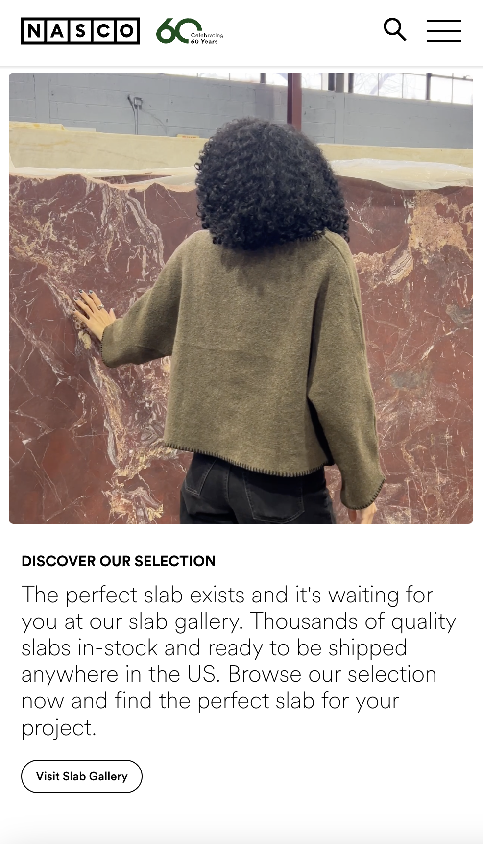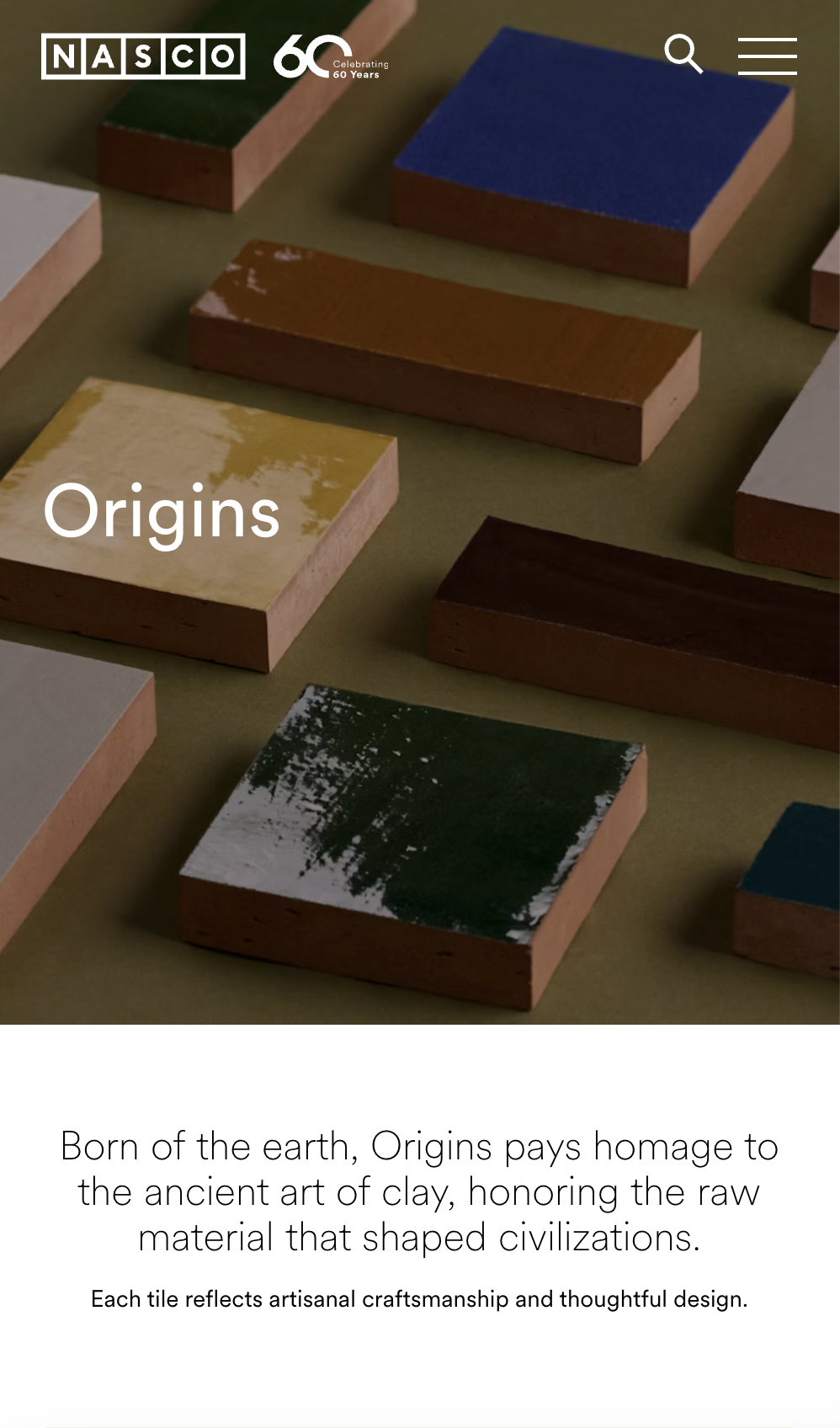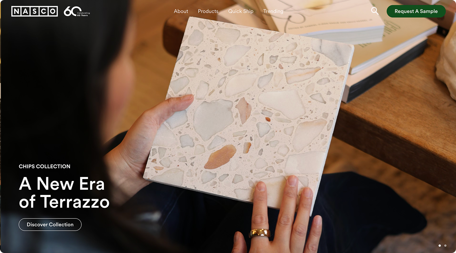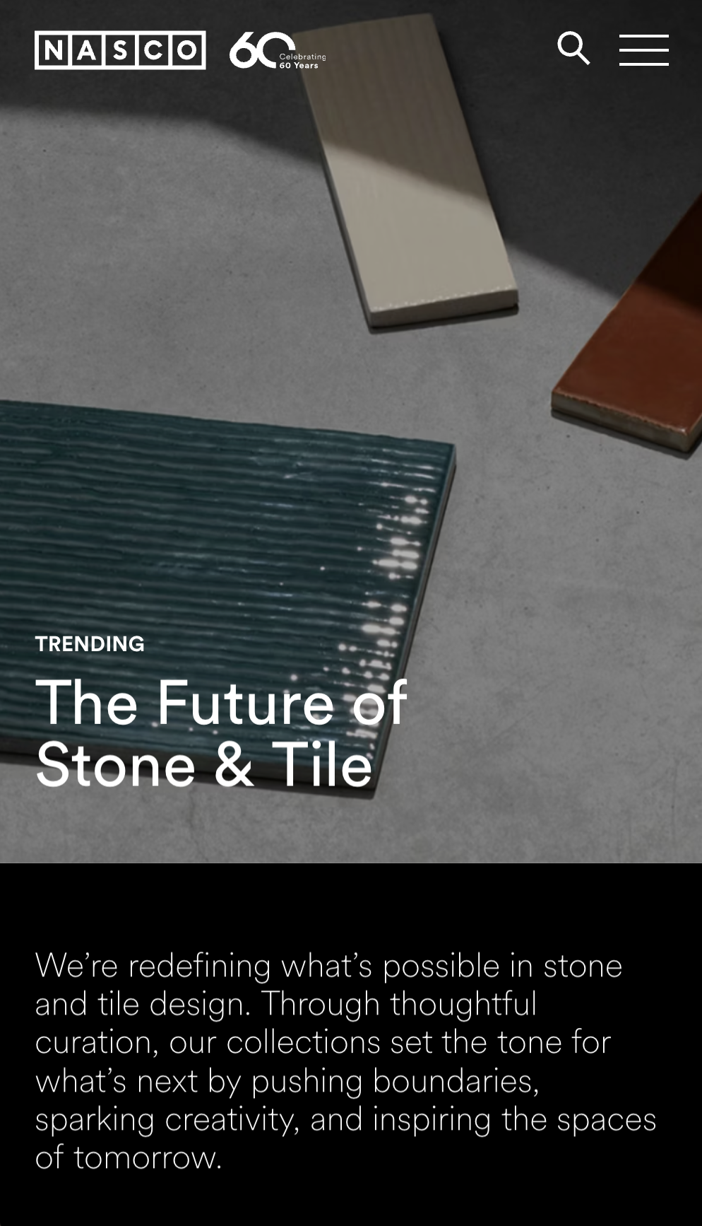 Nasco Stone Tile Brand / Website Refresh The Nasco Stone + Tile website was designed as an homage — a refined, intentional space where designers and architects can discover the perfect material for their projects.